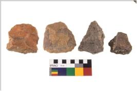 | Description / विवरण | There are n 4 flakes; there are multidirectional irregular scar pattern on them; made of short flakes and all four have tapering edges. |