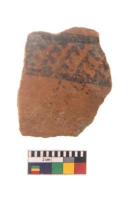 | Description / विवरण | Specimen of black on red ware with black decorative Leaf like design nature painting. |
