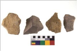 | Description / विवरण | There are n 4 flakes; there are multidirectional irregular scar pattern on them; made of short flakes and all four have tapering edges. |