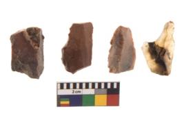 | Description / विवरण | There are n 4 utilized flakes. There are multi directional irregular scar pattern on both dorsal and ventral face of the flakes. two are sharp, and two are tapering edges. |