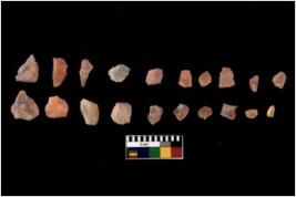 | Description / विवरण | Specimen of flakes Chips with prominent flaking marks. It made up of a short flakes with sides trimmed. |