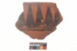 | Description / विवरण | Specimen of black on red ware with black decorative Group of elongated vertical triangles geometric painting. |
