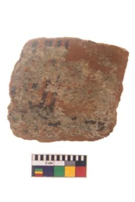 | Description / विवरण | Specimen of black on red ware with black decorative Parallel lines geometric painting. |