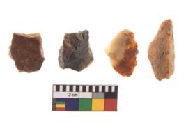 | Description / विवरण | There are n 4 utilized flakes. There are multi directional irregular scar pattern on both dorsal and ventral face of the flakes. two are sharp, and two are tapering edges. |