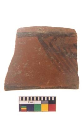 | Description / विवरण | Specimen of black on red ware with black decorative Intersecting curve lines geometric painting. |