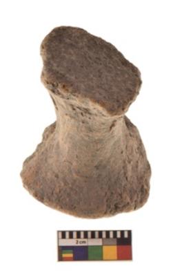 | Description / विवरण | Specimen of a terracotta dabber. It is made of medium to coarse clay and it is grayish in color. It is devoid from any kind of wash. It is having broken handle at the top to provide a firm grip |
