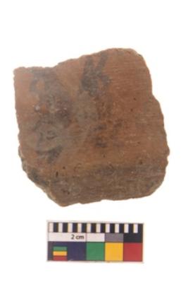| Description / विवरण | Specimen of black on red ware with black decorative Double axe like design and wavy lines geometric painting. |
