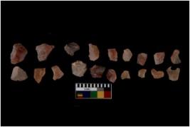 | Description / विवरण | Specimen of flakes Chips with prominent flaking marks. It made up of a short flakes with sides trimmed. |