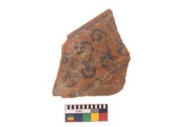 | Description / विवरण | Specimen of black on red ware with black decorative Zig zag line with suspended loops geometric painting. |