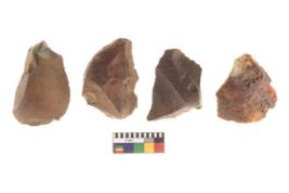 | Description / विवरण | There are n 4 utilized flakes. There are multi directional irregular scar pattern on both dorsal and ventral face of the flakes. two are tapering edges, and two are sharp edges. |