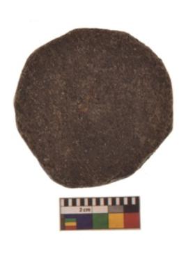 | Description / विवरण | A partially broken specimen of red ware disc with rounded and smooth edge and flat surface. |