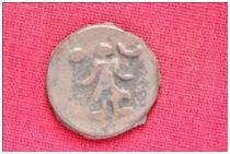 | Description / विवरण | The coin is circular in Shape. Obverse probably the figure of Moon God with right arm curved upwards and the crescent above the left shoulder. Reverse Three hills or cone like objects placed in a straight line below then some letters. |