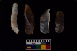 | Description / विवरण | There are n 4 Flake tool; There are multidirectional irregular scar pattern on them. few have blunt edges, Some of them are tapering at one end. |
