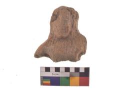 | Description / विवरण | Specimen of a partially broken mask depicting a human face, the facial features show big and protruding eyes. |