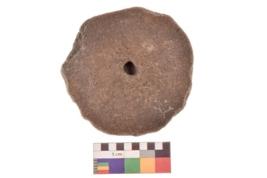 | Description / विवरण | Specimen of terracotta Wheel. It is red ware rounded shape with center perforation. |