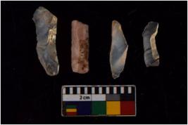 | Description / विवरण | There are n 4 Flake tool; There are multidirectional irregular scar pattern on them. few have blunt edges, Some of them are tapering at one end. |