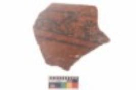 | Description / विवरण | Specimen of black on red ware with black decorative Lattice design geometric painting. |