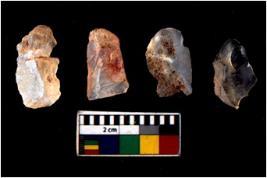 | Description / विवरण | Specimen of flake tools with prominent flaking marks. They are made up of a short flakes with sides trimmed. |