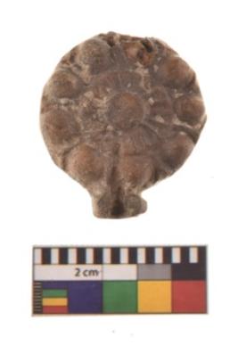 | Description / विवरण | Specimen of a molded circular bead.It is moulded with having floral and circlet design in top |