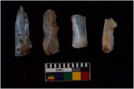 | Description / विवरण | There are n 4 flakes tool; there are multidirectional irregular scar pattern on them; made of short flakes and all four have tapering edges. |