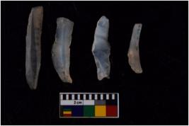 | Description / विवरण | There are n 4 flakes tool; there are multidirectional irregular scar pattern on them; made of short flakes and all four have tapering edges. |