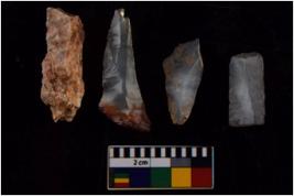 | Description / विवरण | There are n 4 flakes tool; there are multidirectional irregular scar pattern on them; made of short flakes and all four have tapering edges. |