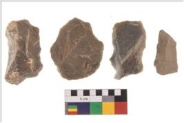 | Description / विवरण | There are n 4 flakes tool; there ar sub rectangular flake with wavy thick distal end and broken functional top. It reined pebbly cortex on one side and irregular thin edge on the other. |