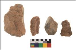| Description / विवरण | There are n 4 flakes tool; there ar sub rectangular flake with wavy thick distal end and broken functional top. It reined pebbly cortex on one side and irregular thin edge on the other. |