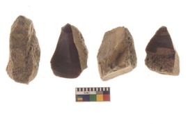 | Description / विवरण | There are n 4 flakes tool; there are flakes tool with prominent flaking marks. It made up of a large flakes with sides trimmed. It is rectangular in shaped |