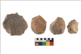 | Description / विवरण | Specimen of a cores with pebbly cortex on one side and irregular thin edge on the other. |