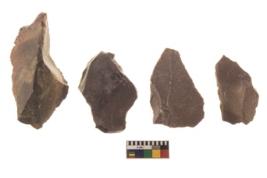 | Description / विवरण | There are n 4 flakes tool; there are large flakes with sides trimmed, Marks of secondary flaking are present on the both the faces. The dorsal is relatively flat. One is pointed functional top. |