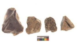| Description / विवरण | There are n 4 flakes tool; there are large flakes with sides trimmed, Marks of secondary flaking are present on the both the faces |