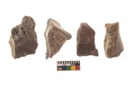 | Description / विवरण | There are n 4 flakes tool; there are large flakes with sides trimmed, Marks of secondary flaking are present on the both the faces |