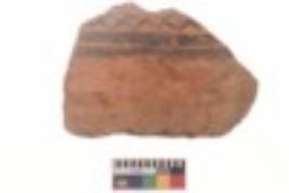 | Description / विवरण | Specimen of black on red ware with black decorative Lattice pattern geometric painting. |