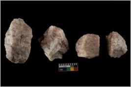 | Description / विवरण | Specimen of a cores with several broad fluted marks and some of them are tapering at one end. |