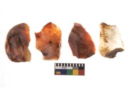 | Description / विवरण | There are n 4 utilized flakes. There are multi directional irregular scar pattern on both dorsal and ventral face of the flakes. two are tapering at one end and two are blunted edges. |