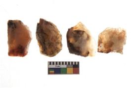 | Description / विवरण | There are n 4 utilized flakes. There are multi directional irregular scar pattern on both dorsal and ventral face of the flakes. two are sharp at one end and two are blunted edge. |