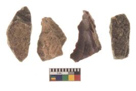 | Description / विवरण | There are n 4 flakes tool; there are large flakes with sides trimmed, Marks of secondary flaking are present on the both the faces. The dorsal is relatively flat. |