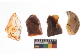 | Description / विवरण | There are n 4 utilized flakes. There are multi directional irregular scar pattern on both dorsal and ventral face of the flakes.three are chalcedony, and one has chert, two are sharp edges, and two are tapering at one end. |