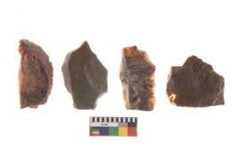 | Description / विवरण | There are n 4 utilized flakes. There are multi directional irregular scar pattern on both dorsal and ventral face of the flakes. two are chalcedony, and two are chert, two are sharp edges, and two are tapering edges, at one end. |