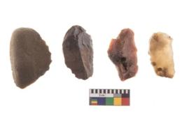 | Description / विवरण | There are n 4 utilized flakes. There are multi directional irregular scar pattern on both dorsal and ventral face of the flakes. two are chalcedony, and two are chert, two are tapering edges, and two are blunted edges at one end. |