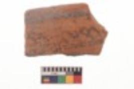 | Description / विवरण | Specimen of black on red ware with black decorative Lattice design geometric painting. |