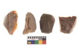 | Description / विवरण | There are n 4 utilized flakes. There are multi directional irregular scar pattern on both dorsal and ventral face of the flakes. three are chert, and one has chalcedony, three are tapering at one end and one has blunted edge. |