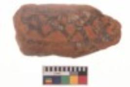 | Description / विवरण | Specimen of black on red ware with black decorative Broad diamond lattice geometric painting. |