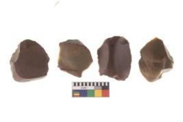 | Description / विवरण | There are n 4 utilized flakes. There are multi directional irregular scar pattern on both dorsal and ventral face of the flakes. two are tapering at one end and two are rounded edges. |