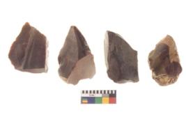 | Description / विवरण | There are n 4 flakes tool; there are multidirectional irregular scar pattern on them; made of short flakes and all four have tapering edges. |