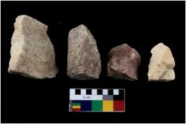 | Description / विवरण | Specimen of a cores with several broad fluted marks and some of them are tapering at one end. |