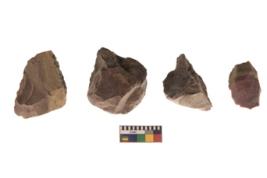 | Description / विवरण | There are n 4 flakes tool; there are large flakes with sides trimmed, Marks of secondary flaking are present on the both the faces. The dorsal is relatively flat |