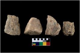 | Description / विवरण | Specimen of a cores with several broad fluted marks and some of them are tapering at one end. |