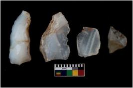 | Description / विवरण | There are n 4 of utilized worked cores and have multidirectional scar pattern. Three are tapering at one end. |